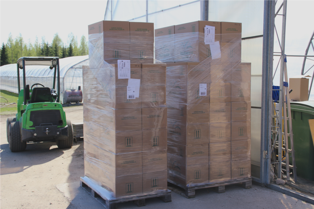 Taimet pakataan kasvatuskennoissaan tai -ruukuissaan pahvilaatikoihin. Laatikot voidaan lähettää sellaisenaan tai suuremmissa määrissä rahtilavoilla. Pakkausmäärät pahvilaatikoihin ovat mansikalla enintään 260 kpl, lakalla 160 kpl ja vadelmalla 18 tai 36 kpl (koosta riippuen). Yhdelle FIN-lavalle mahtuu 18 - 24 laatikkoa. Pensaiden lähetyksissä käytetään lavakauluksia tai pahvisia kontteja.